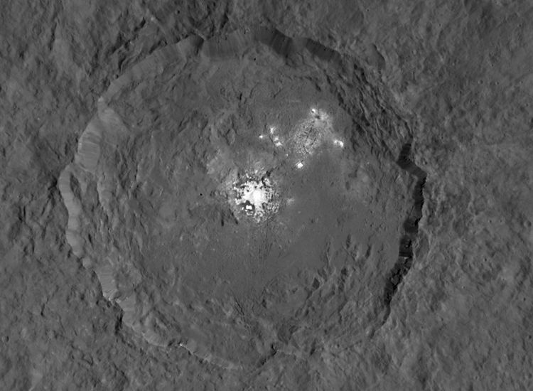 Обращает на себя внимание то, что это единственные подобные пятна на Церере - больше таких нет...
