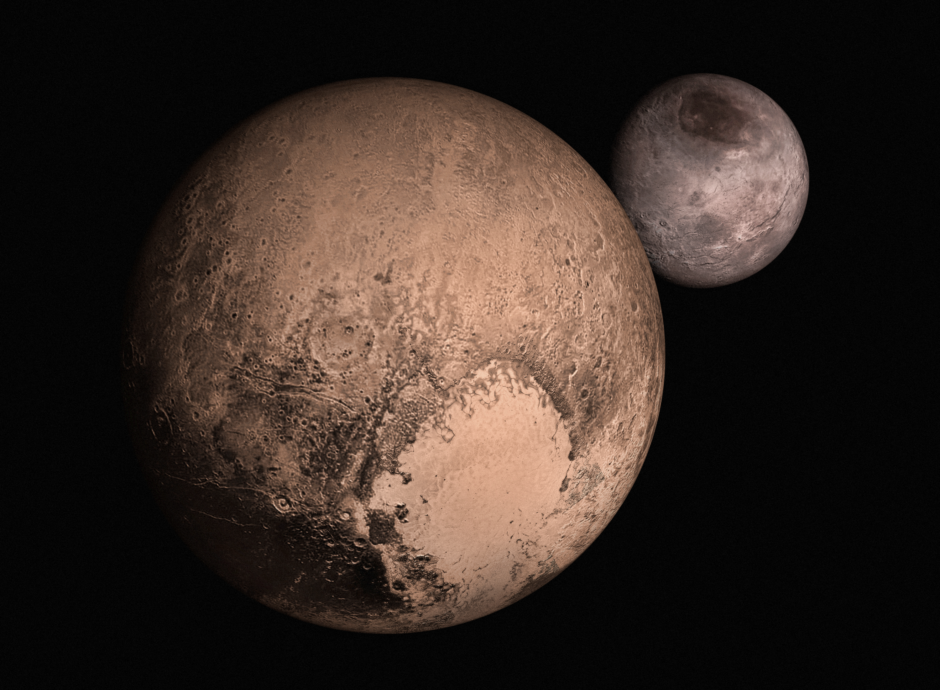 Причём, насколько можно понять, на них мы видим натуральные цвета Плутона с Хароном.