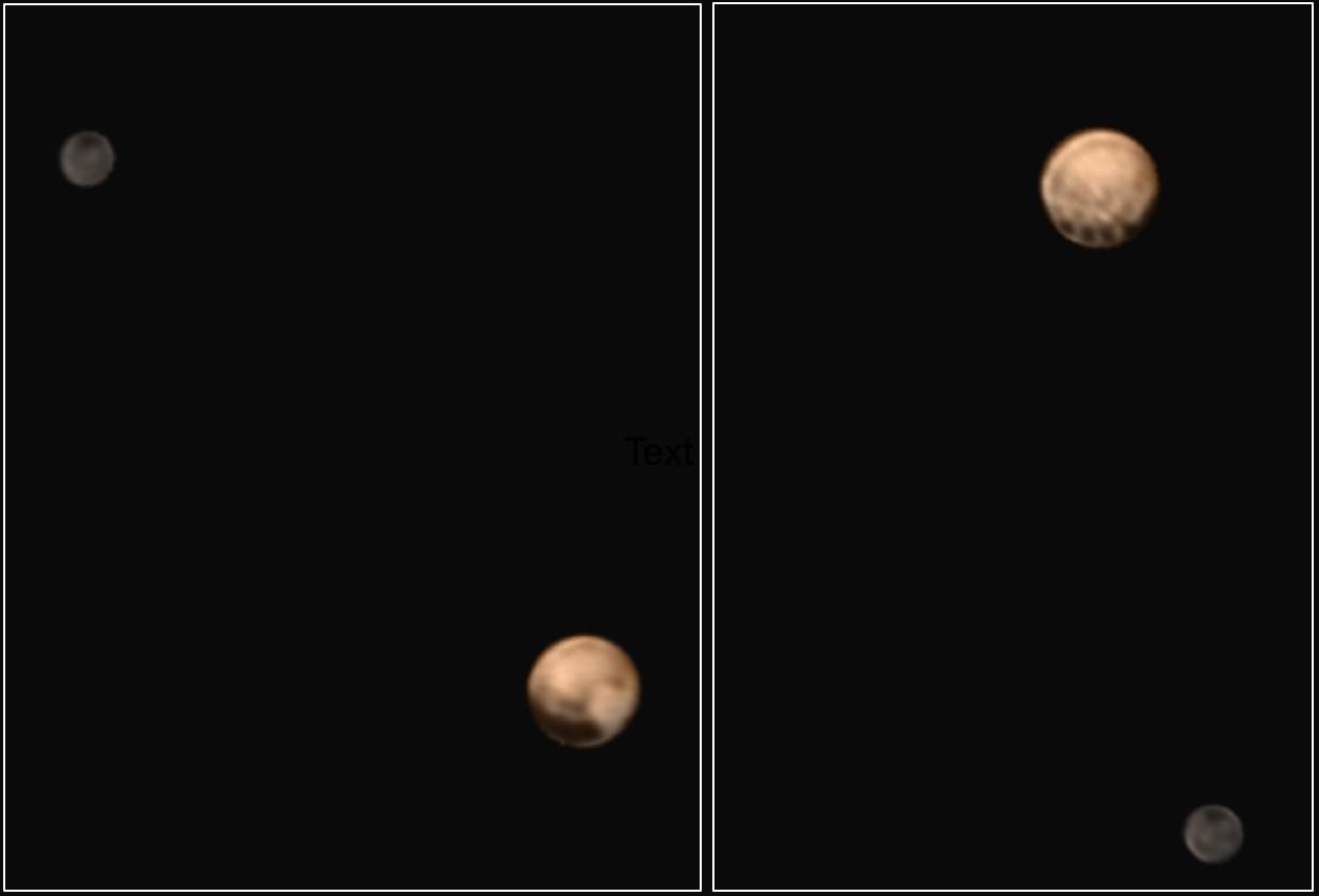 Плутон и Харон с разных точек зрения.